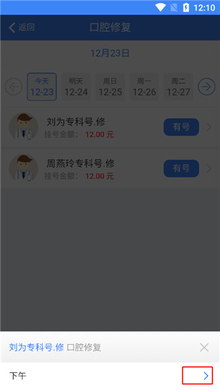 4、比如:口腔修复,如果上面显示有号说明可以挂号,没有号也会显示的哦。
