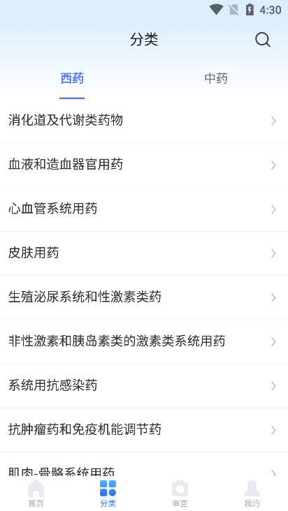 4、点击分类,可以分门别类,根据疾病或药品属性寻找合适的药物