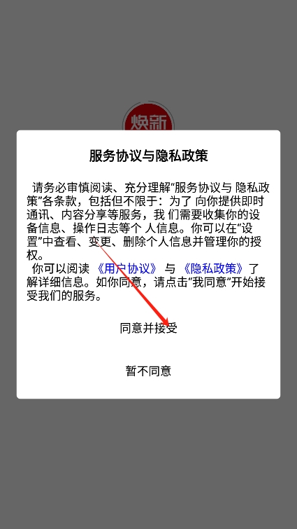 2、打开后阅读并同意焕新生活app的用户协议