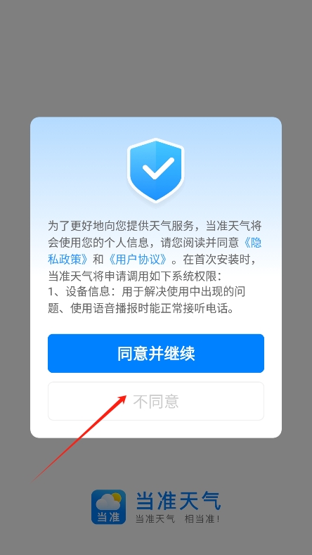 2、进入后阅读并同意当准天气app的用户协议