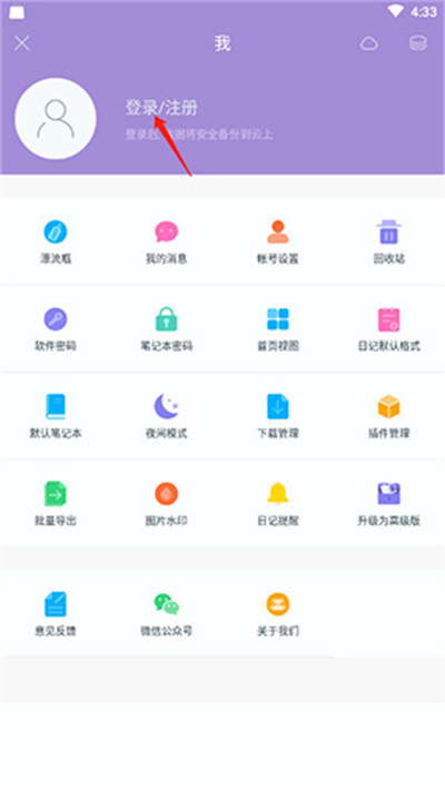 2.点击【登录/注册】选项。