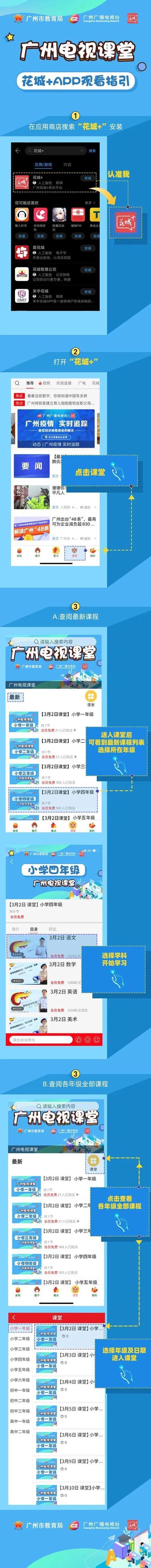 手机端下载广州广播电视台官方客户端“花城+”APP,点击相应专题通过手机端观看直播课程。具体使用说明: