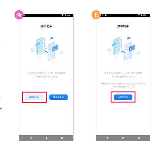 -请确保在新旧手机上已经安装了Xperia 定制版换机助手。