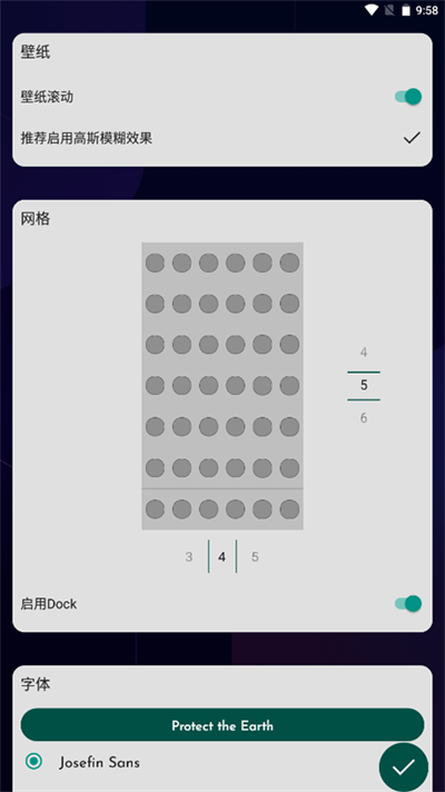 1.设置壁纸滚动、高斯模糊效果,网格形式以及字体等,点击右下角的【√】。