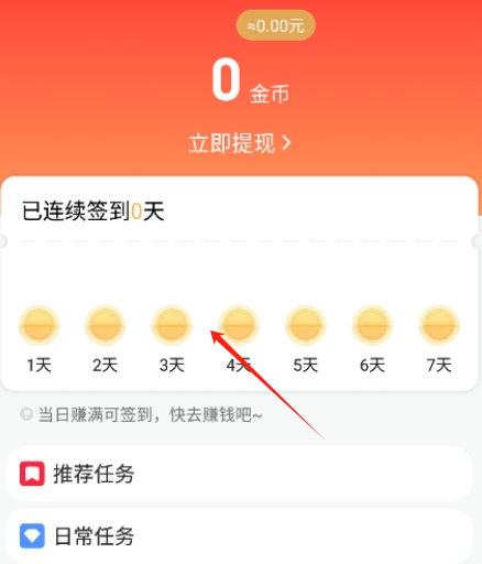 4、通过签到完成任务也是可以获取金币的