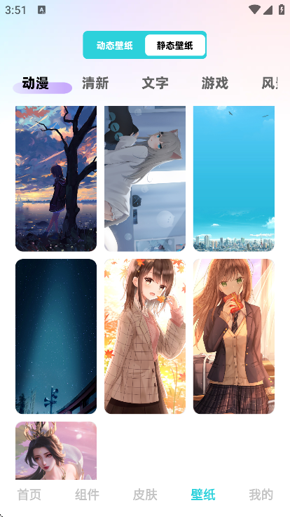 2、进入后点击壁纸,您可以获取到动态壁纸和静态壁纸