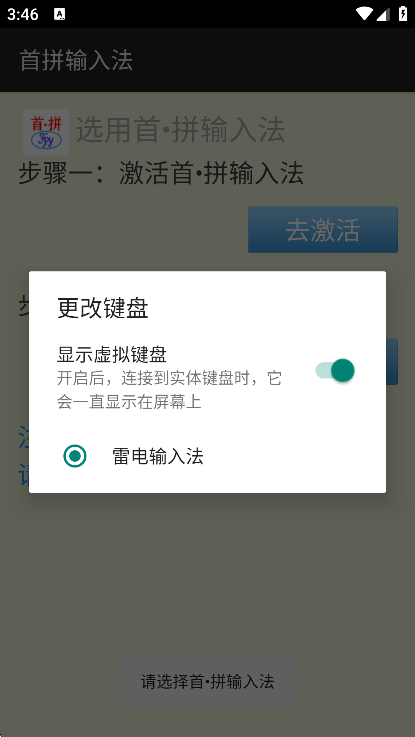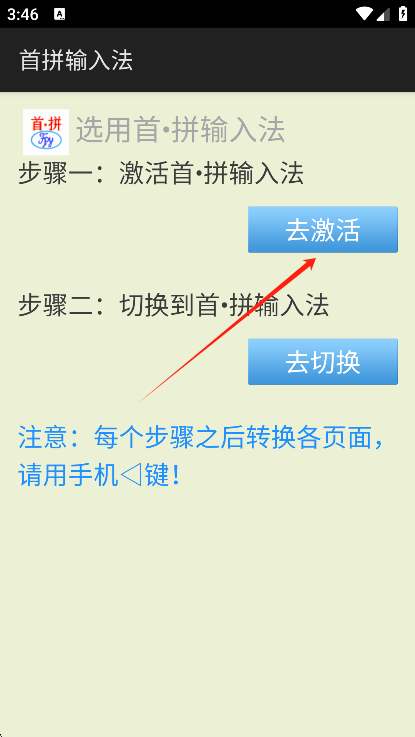 2、我们先完成步骤一,激活首拼输入法,点击去激活