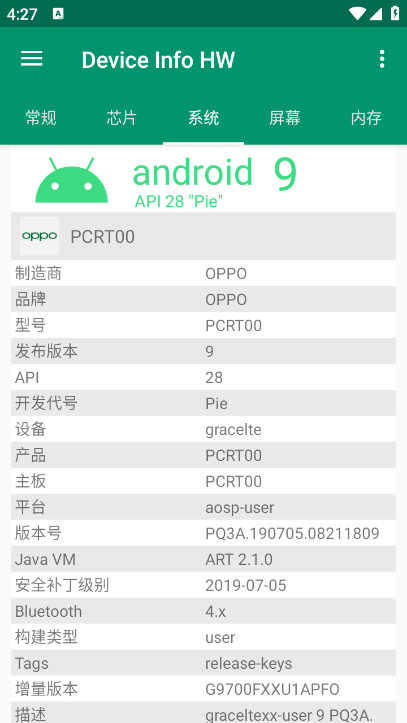 2、可以查询到自己安卓系统的详细情况,包括版本、品牌、api等等。