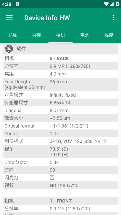 Device Info HW 是一个用于安卓设备的硬件和软件信息应用。应用尝试检测您智能手机的组件,以提供有关设备硬件的完整信息。