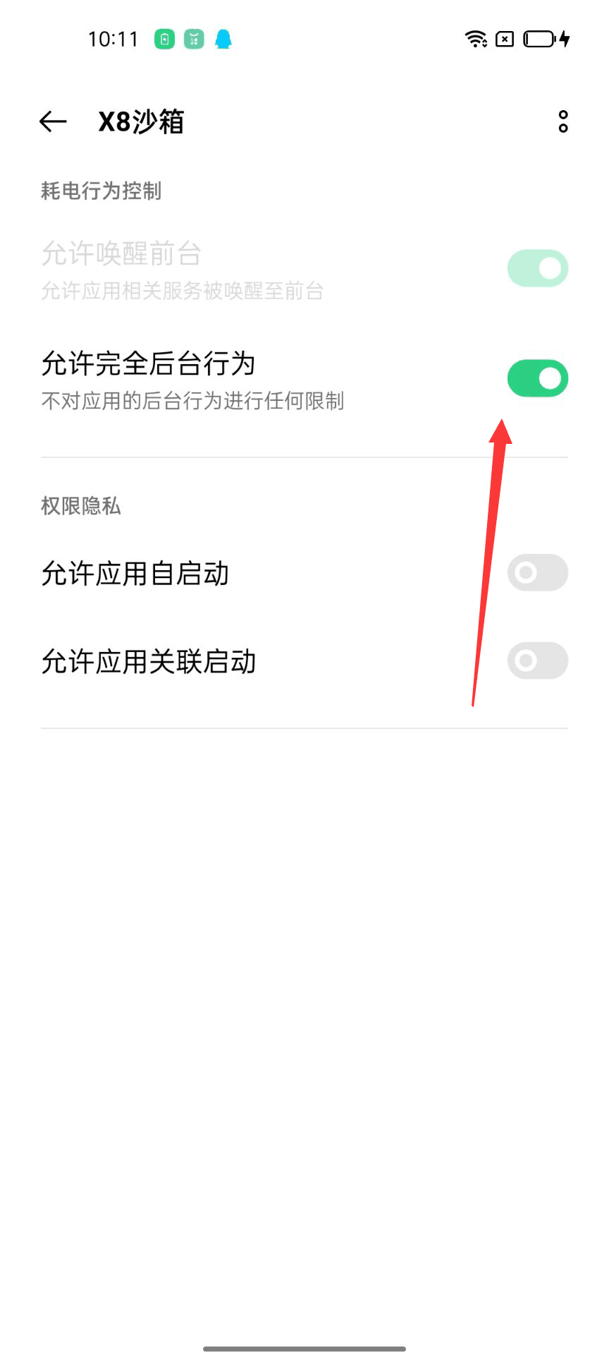 1.找到X8沙箱,给它允许后台高耗电管理。