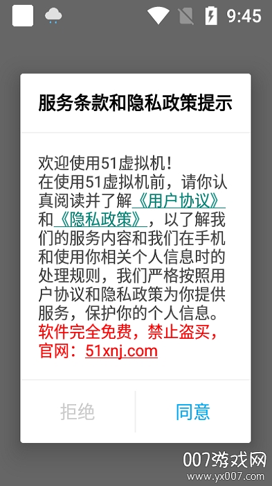 打开软件,点击同意用户授权信息