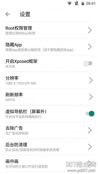 虚拟机里面有内置的root超级用户权限,权限不会涉及宿主系统的安全问题,不用担心病毒和系统崩溃的风险。另外还支持Xposed,可自定义分辨率,玩机党必备。