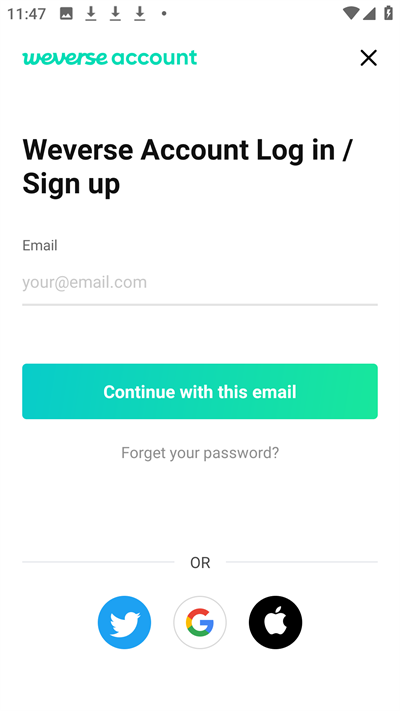 1、在本站下载并安装weverse注册/登录账号即可体验完整服务,还没有账号的小伙伴也不必担心,在下文将为各位介绍具体怎么注册weverse