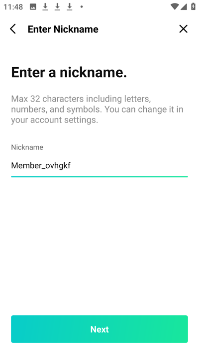 5、输入昵称,未重复的昵称可继续下一步 Next