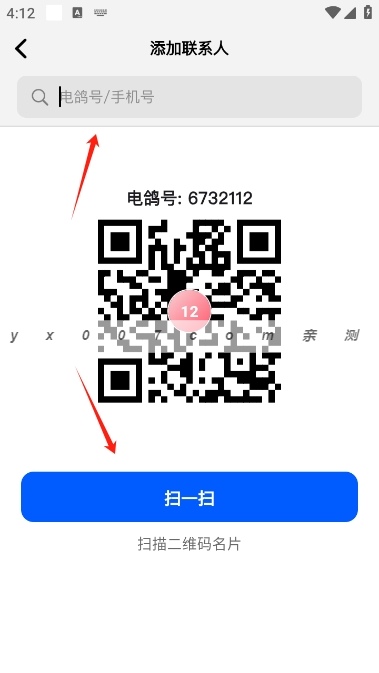 4、之后让对方扫一扫你得二维码名片即可添加,也可以输入电鸽号添加