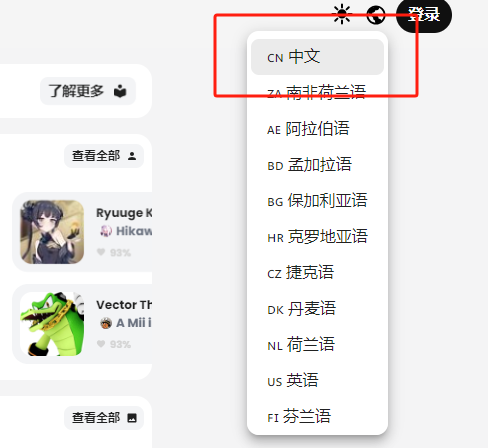 然后点击右上角位置调出语言
