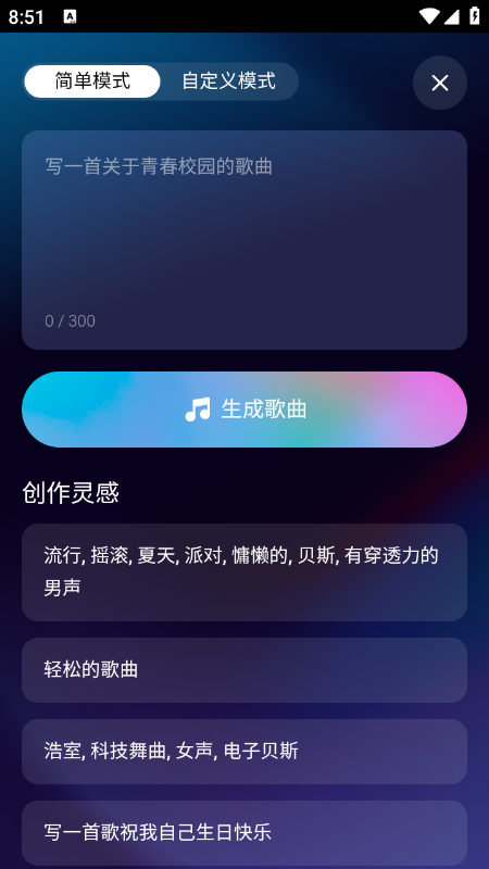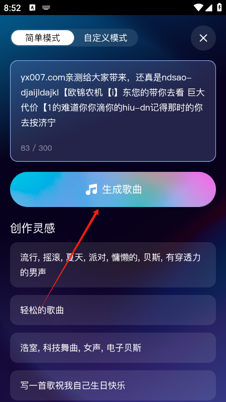 1、让用户通过输入文字创造专属歌曲,操作简便,随意进行。