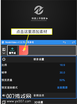 1、首先进入Node Video安卓版,点击这个?号进入剪辑主页导入素材;
