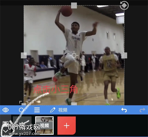 5、选择好素材过后,点击左下角小三角;