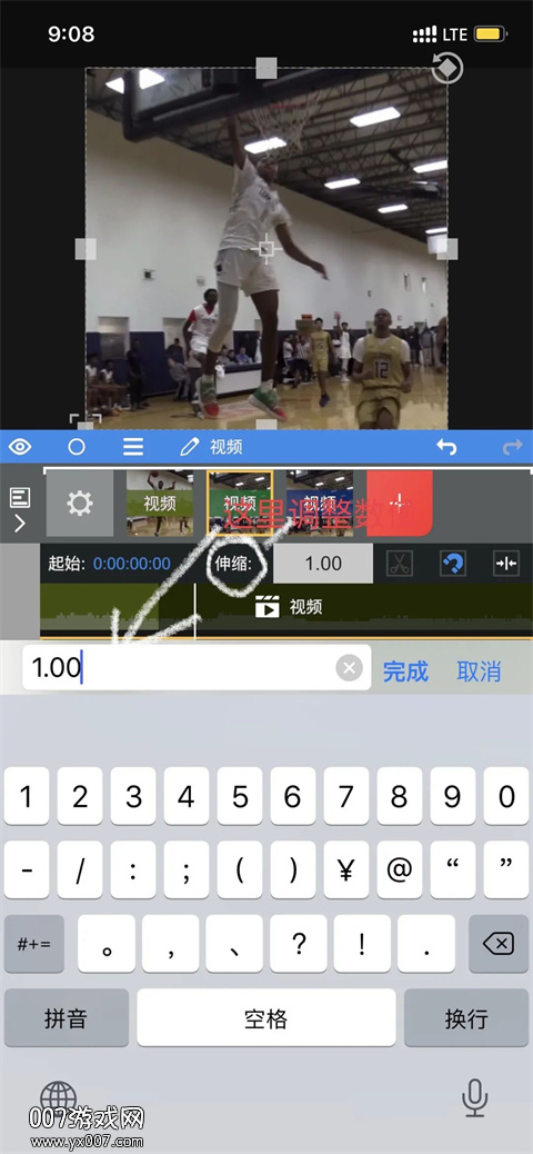 3、打开补帧功能后,还需要通过放慢视频速度来看到效果;