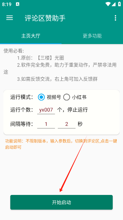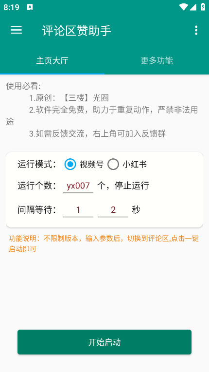 一款能适配抖音、b站、快手等多个平台的评论互动助手,经过了严格的安全检测,且全部功能免费使用,没有任何的广告弹窗,使用方法也十分的简单,是需要设置好相应的参数就能24小时不间断的为你的账号进行评论、粉丝互动、提高活跃度等,让你可以解放双手,轻松运营账号