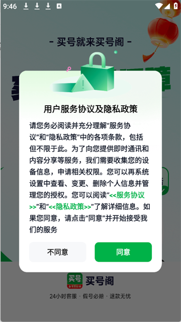1、在蝌蚪游戏网下载好买号阁app,查看并同意隐私政策与用户协议。