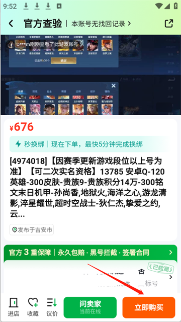 【安心购号】账号交易永久包赔、交易均签署协议、多重安全保障、售后无忧