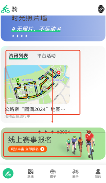 2、页面往下拉可以看见到一些圈内资讯以及线上赛事报名入口。