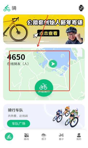 1、下载安装进入之后就可以在首页上看见到当前的在线骑友。