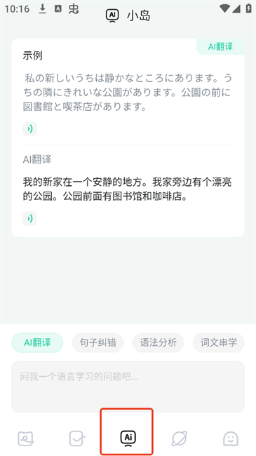 5.第三个ai功能页提供了中日文互译功能以及相关解析
