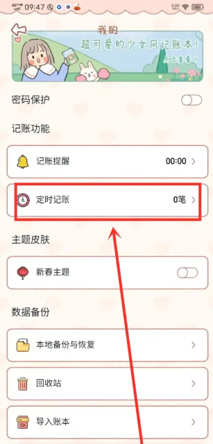 1、打开恋恋记账,点击“定时记账”选项。