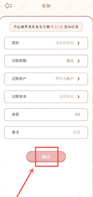 3、在添加页面编辑定时记账信息,确认后点击“确定”完成设置。