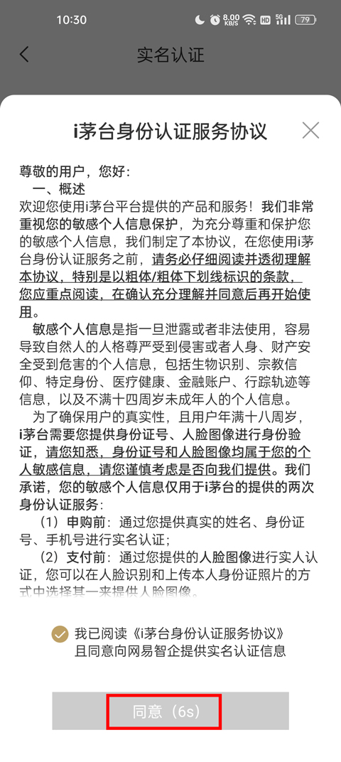 3、然后勾选【我已阅读并同意】,并点击【同意】。