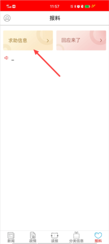 1、打开软件后,点击“报料”-“求助信息”