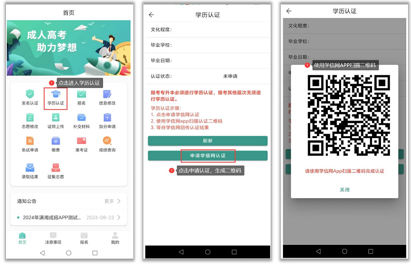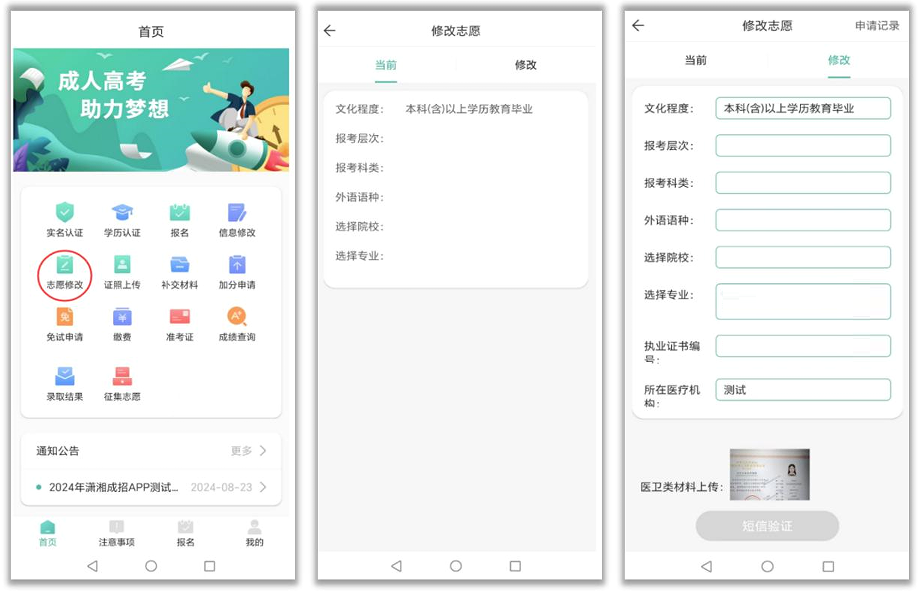 潇湘成招app下载安装是一款成人高考一站式服务平台,集合报名、备考、志愿填报、成绩与录取查询等功能于一体,帮助考生解决报名到录取的所有问题,实现全线上办理,报名流程规范透明,数据安全有保障,是湖南考生必不可少的手机app。