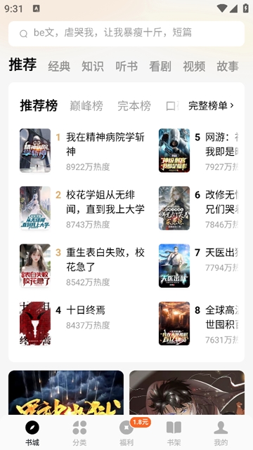 根据你的阅读爱好,个性化推荐,优质书单,书城精细化推荐,总有一款打动你!