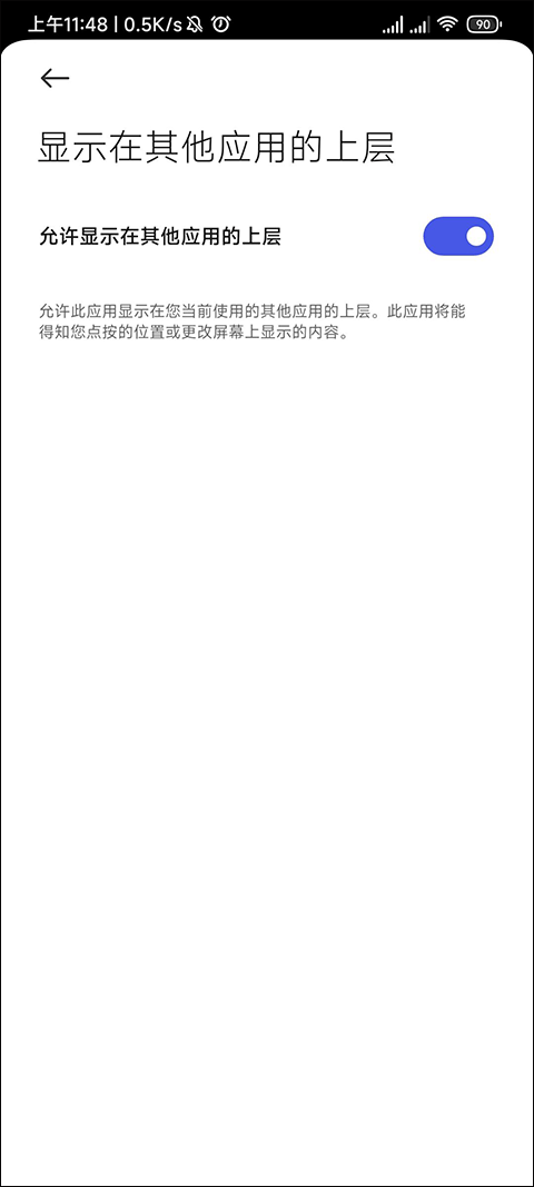 然后把允许显示在其他应用的上层后面的开关打开就可以了。