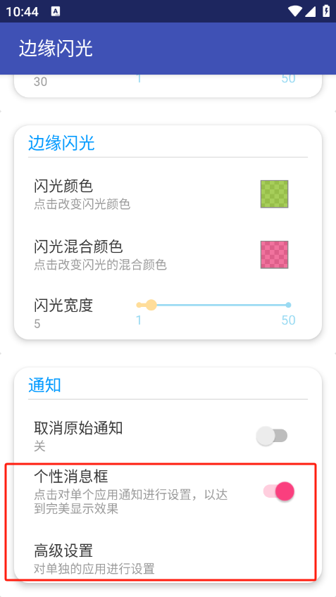 4、如果您想要单独让某个app闪光,可以在高级设置里操作