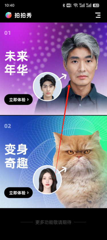 拍拍秀是一款带你领略奇妙影像变化的创意拍照神器,拥有未来年华和变身奇趣两大功能。快来下载拍拍秀 APP,开启你的奇幻拍照之旅,探索不一样的自己吧!