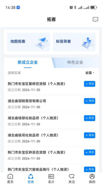 可根据你的拓客需求条件以标签筛选方式查找你想要查找的客户资源。