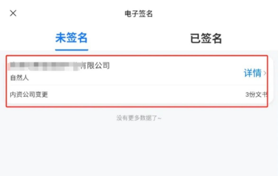 9.签名完成后,“未签名”页面就没有办理公司数据信息了;