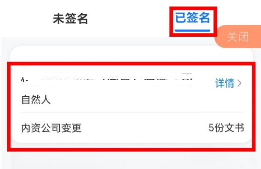 10.在“已签名”页面可以看到办理公司数据信息,签名任务全部完成。