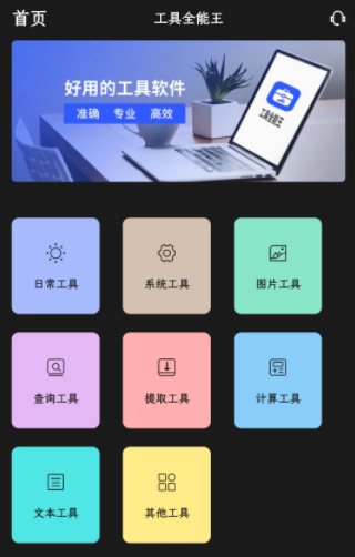 工具全能王是一款集合了多种实用工具的应用程序,旨在满足用户在日常生活和工作中的多样化需求。它包含了日常工具、系统工具、图片工具、查询工具、提取工具、计算工具、文本工具和其他工具这八大模块。每个模块都丰富的功能,如LED手机字幕、屏幕坏点检测、二维码生成、文本转码、随即笑话等。无论是寻找生活的小确幸,还是应对工作的大挑战,工具全能王都能提供最得心应手的帮助。
