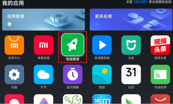 3.将U盘插到小米盒子上。选择【电视管家】。