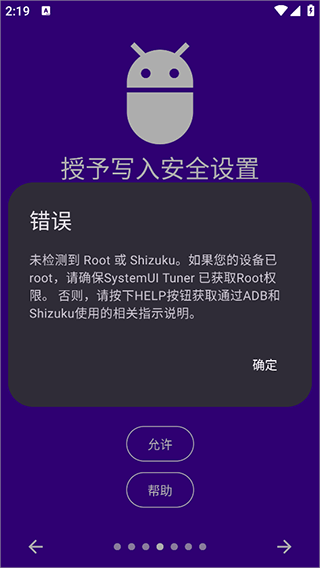3、如果出现了下图的提示,证明你第一步没做好,就是没有安装和激活Shizuku