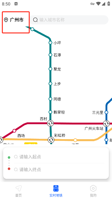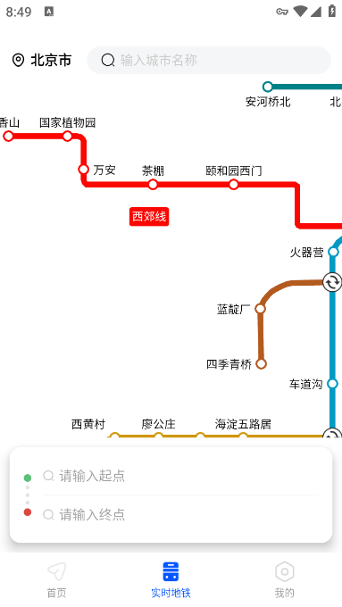 2.在【实时地铁】板块,输入起点和终点,就能查看地铁路线。
