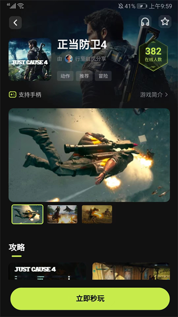 3、进入游戏详情界面,可查看游戏介绍和相关的攻略,点击【立即秒玩】就可以直接开始游戏了;