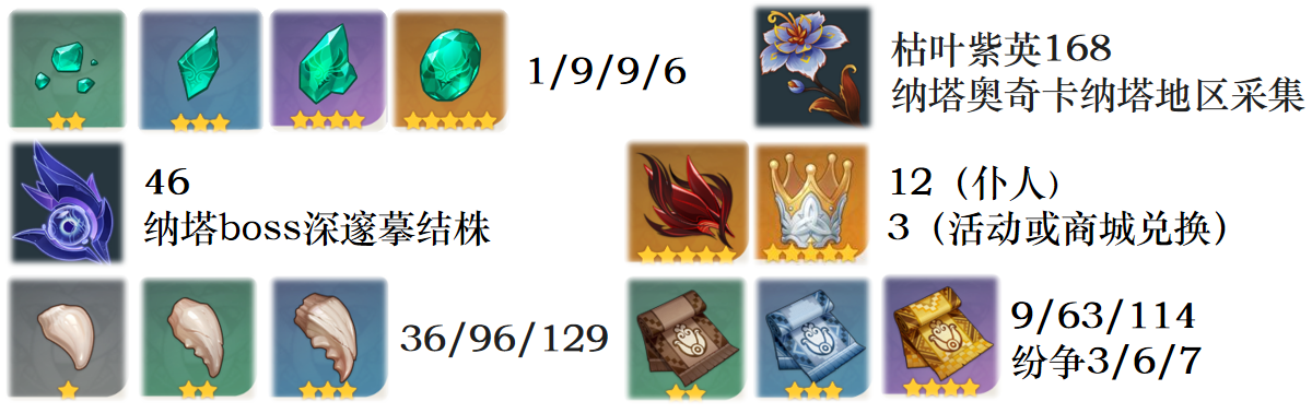 备注1:现在游戏中已经有了区域特产的跟踪采集,旅行者已经不需要在游戏外找额外的采集路线了,游戏内就可以完成,在背包里,找到对应的区域特产(枯叶紫英),然后就可以找到跟踪路线了,推荐旅行者携带玛拉妮、基尼奇、卡奇娜进行采集,并且,新版本中大世界敌人的寻路也优化了,旅行者也可以在背包中找到对应功能