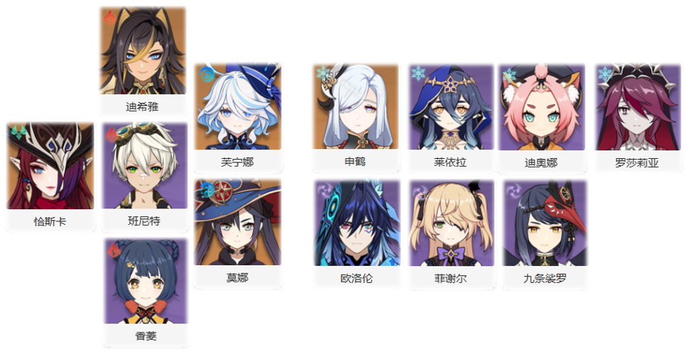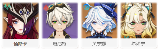 备注:如果没有希诺宁,可以考虑替换成钟离和莫娜,如果没有芙宁娜,也可以换成莫娜