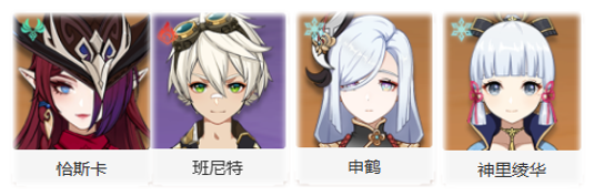 简易输出手法:申鹤元素战技元素爆发,班尼特元素战技元素爆发,绫华替代冲刺元素战技元素爆发,恰斯卡元素战技强化重击4次,元素爆发,循环